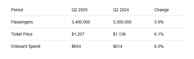 In Q2, Carnival reported $6.3 billion in revenues, a 9.5% YoY increase from $5.8 billion, as ticket revenue increased 9.3% from $3.7 billion to $4.1 billion and onboard revenue increased 9.7% from $2 billion to $2.2 billion.