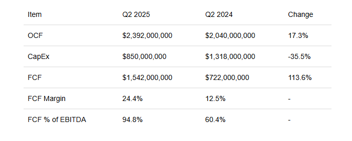 At the same time, Carnival’s impressively high EBITDA flow-through rate of 94.8% in Q2 is a crucial element to its balance sheet deleveraging efforts, as it has already early redeemed $850 million of notes in the first half of the year, as part of its plan to reduce its debt load by $5 billion throughout 2025 and 2026. The company’s financial performance is also helping it to refinance its existing debt at lower interest rates as it refinanced $6.5 billion in debt in the first half of 2025, saving $163 million in annualized interest expenses, which has the potential to further improve its profitability profile.