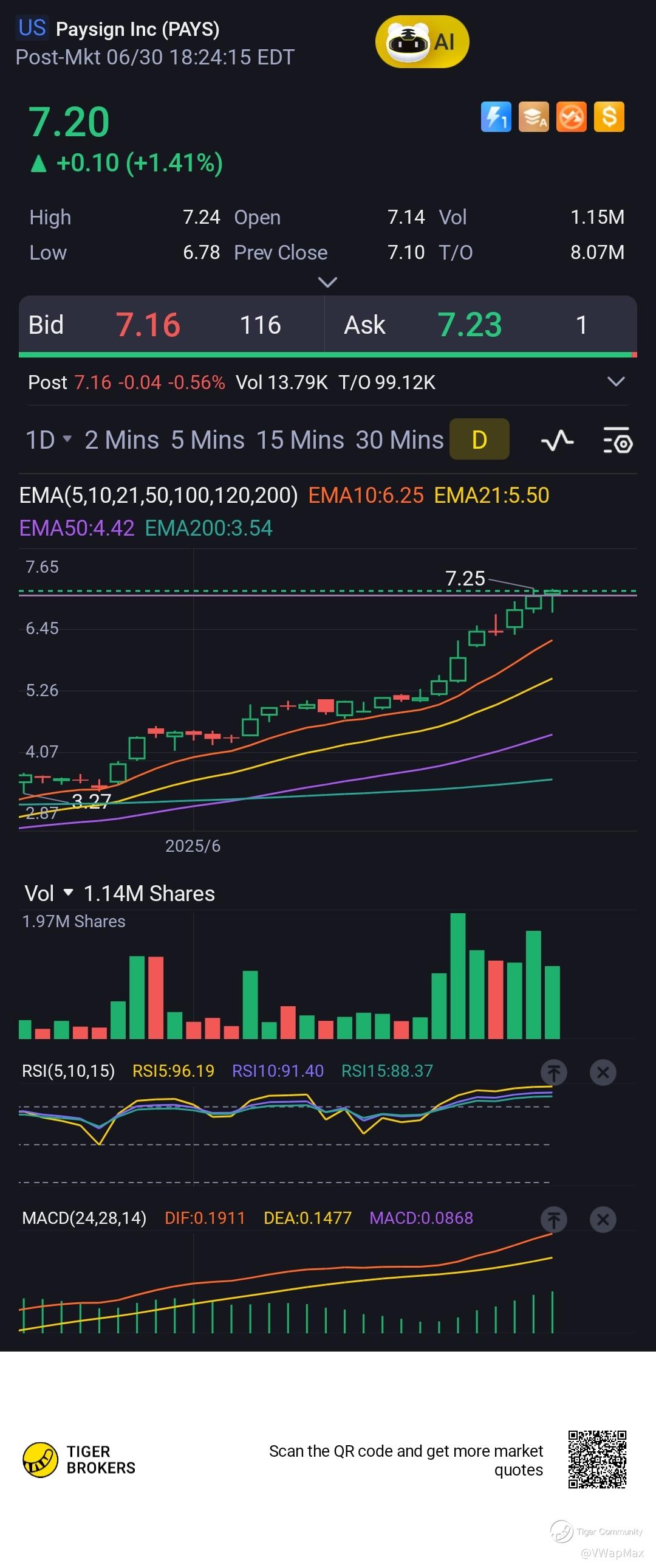 $Paysign Inc(PAYS)$ buy this cause volume says its hot.
