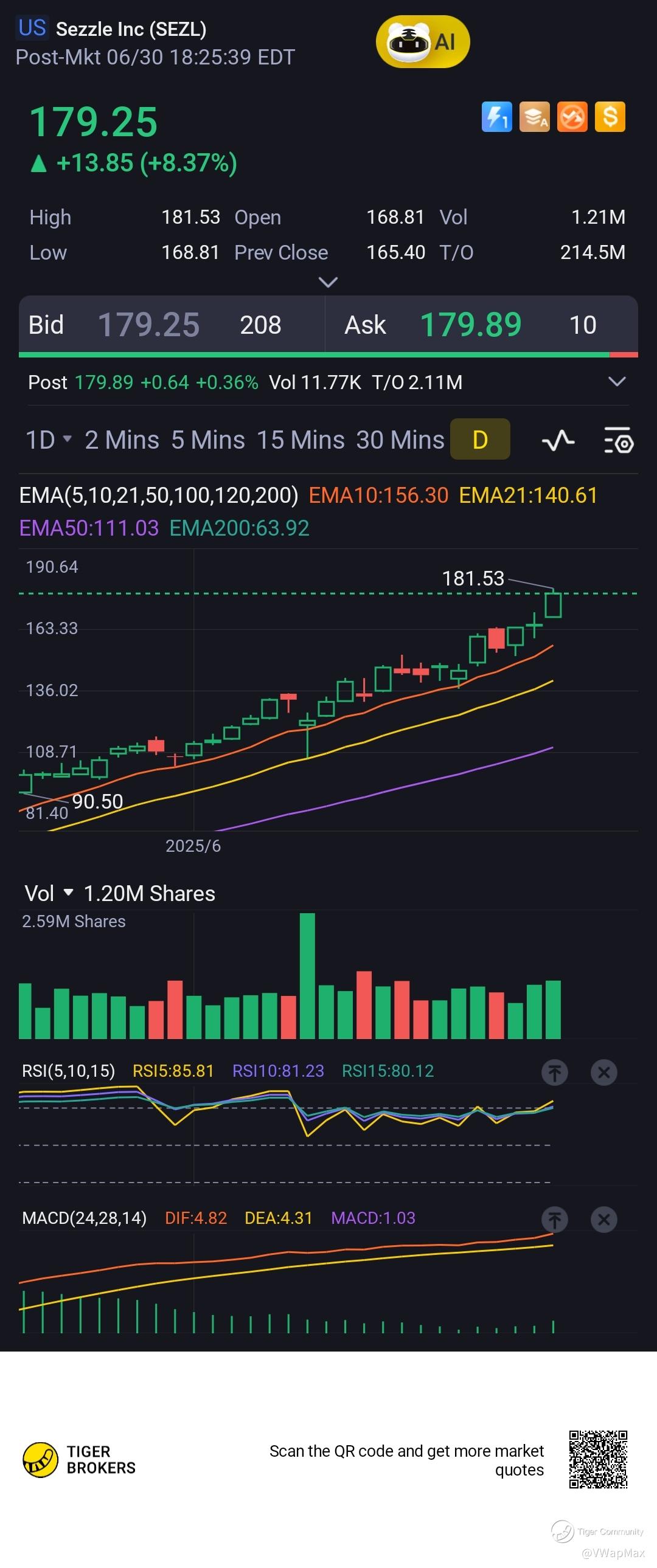 $Sezzle Inc(SEZL)$ star performer. Wait for pullback.