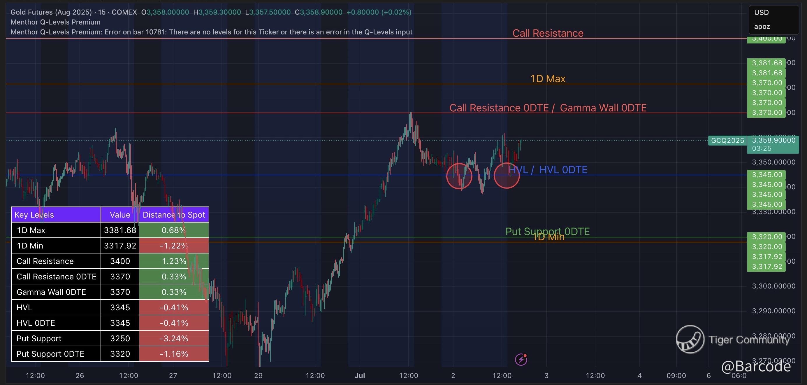 β’ Reuters highlights spot gold retesting $3,358 resistance, right near the Gamma wall
