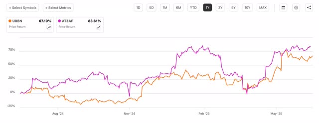 And what better way to do this by partnerships with retailers like Urban Outfitters, Aritzia, and Amazon. Both URBN & ATZAF are up an impressive 67.2% and 83.6% in the past year as a result of their strong brand growth and expansion.