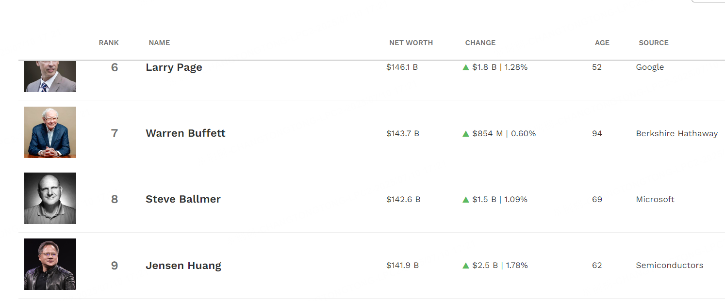 According to the Bloomberg Billionaires Index, Huang's net worth reached $141.9 billion as of Wednesday’s close, ranking him 9th richest in the world, up $27.6 billion year-to-date.