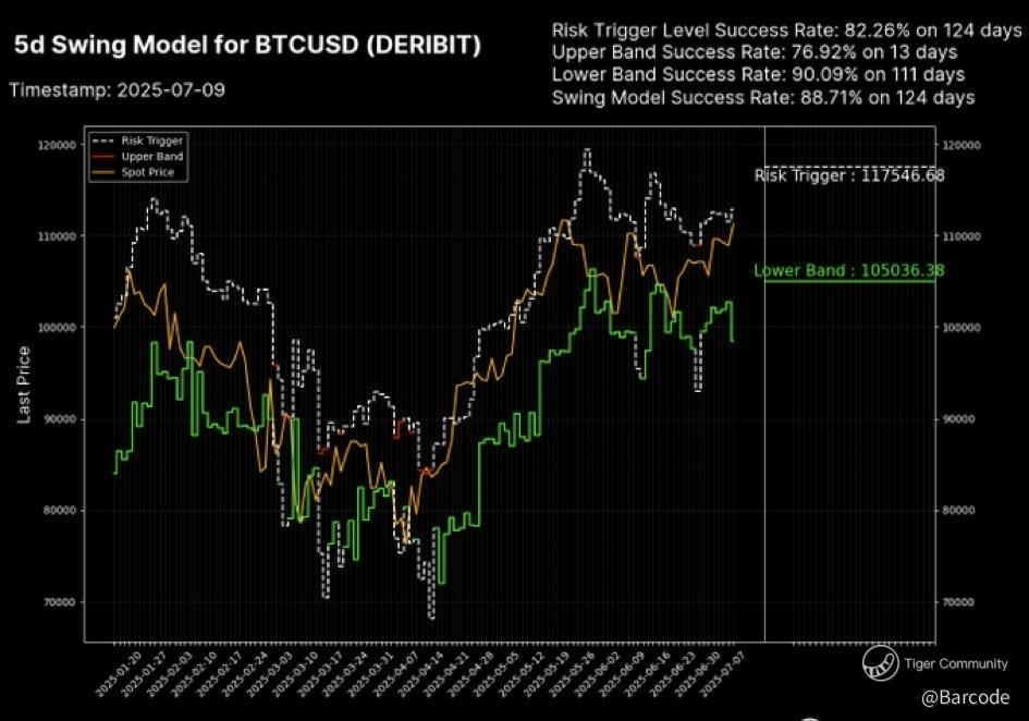 • Swing risk trigger sits at $117.5K, which aligns with model projection