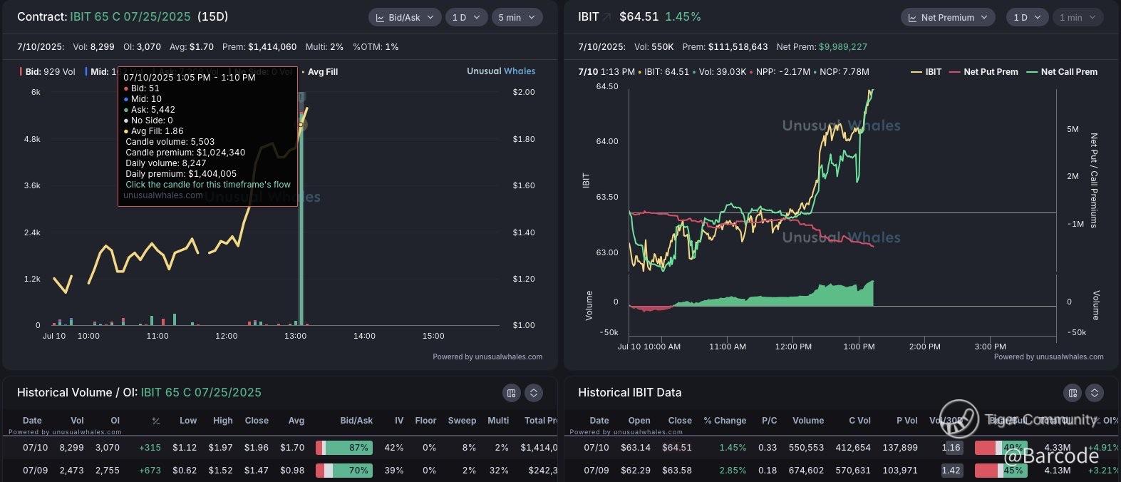 💥 Options Flow: Someone Just Bet $1M+ on IBIT July 65s