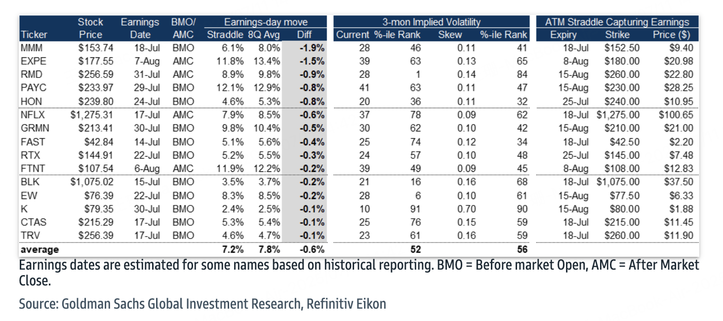 It's earnings season again, and both the U.S. stock market and major index-weighted stocks are hitting new highs. Goldman Sachs strategists are particularly optimistic about this quarter’s earnings from financial and banking stocks and have recommended four earnings-season options strategies this week: