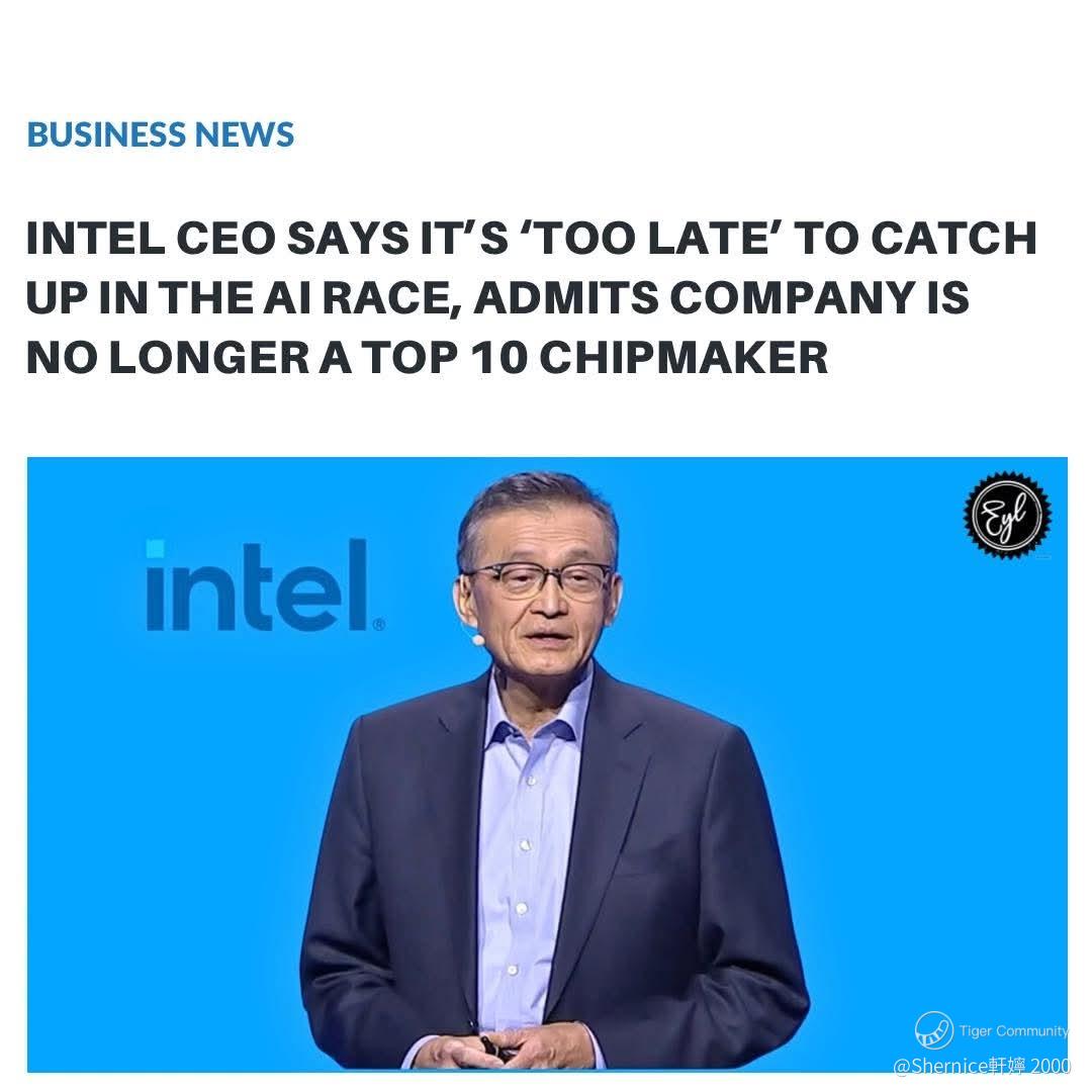 $Intel(INTC)$ CEO Lip-Bu Tan admitted that the company has slipped out of the global top 10 semiconductor rankings and conceded it is “too late” for Intel to catch up in the AI training space. The company’s valuation has plunged to just over $100 billion—down sharply from late 2023—while competitors like Nvidia have soared past the $4 trillion mark.