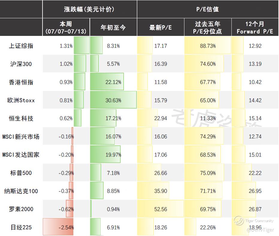 ◼ This week, key data points to focus on include the U.S. June CPI/PPI, June retail sales, as well as earnings reports from major tech companies like TSMC and Netflix.