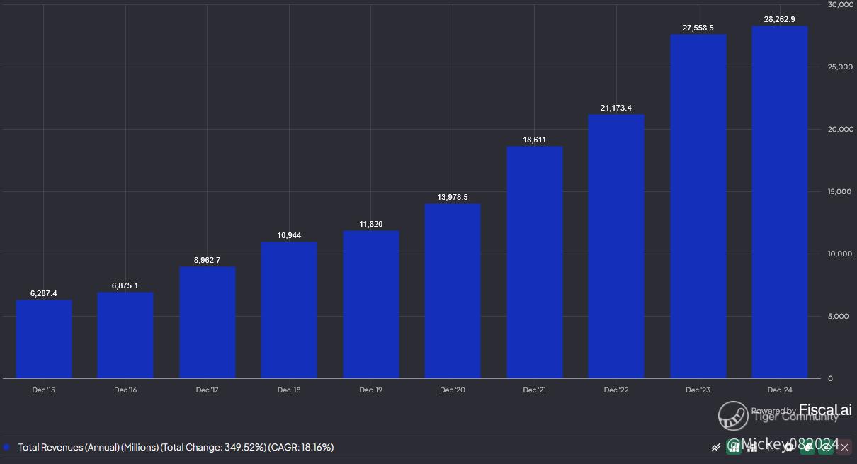 Between 2020 and 2024, ASML reported impressive compounded annual revenue growth, routinely surpassing analyst expectations. This strong momentum has positioned ASML as one of the top performers within the semiconductor capital equipment space.