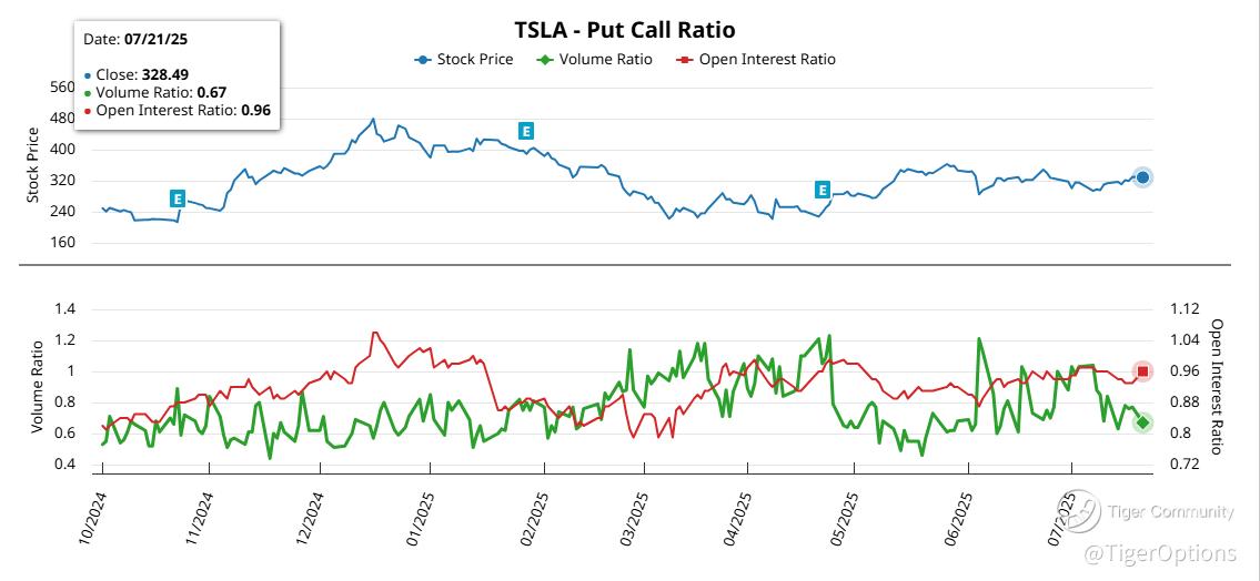 With a volume ratio of 0.67, I'd say calls are in demand today, which aligns with my view that traders are anticipating positive news or momentum. A 30-day OI ratio above 1.0 (~1.35) implies that institutional players have built more put exposure, likely as a hedge against macro or earnings-related risks.