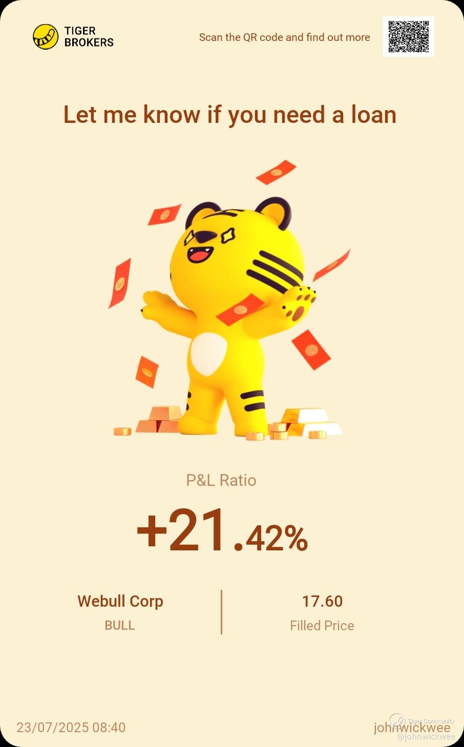 Share your positions with us! This is a column where you can find the winning trades of our fellow tigers. There probably are a few potential opportunities that you may have overlooked.