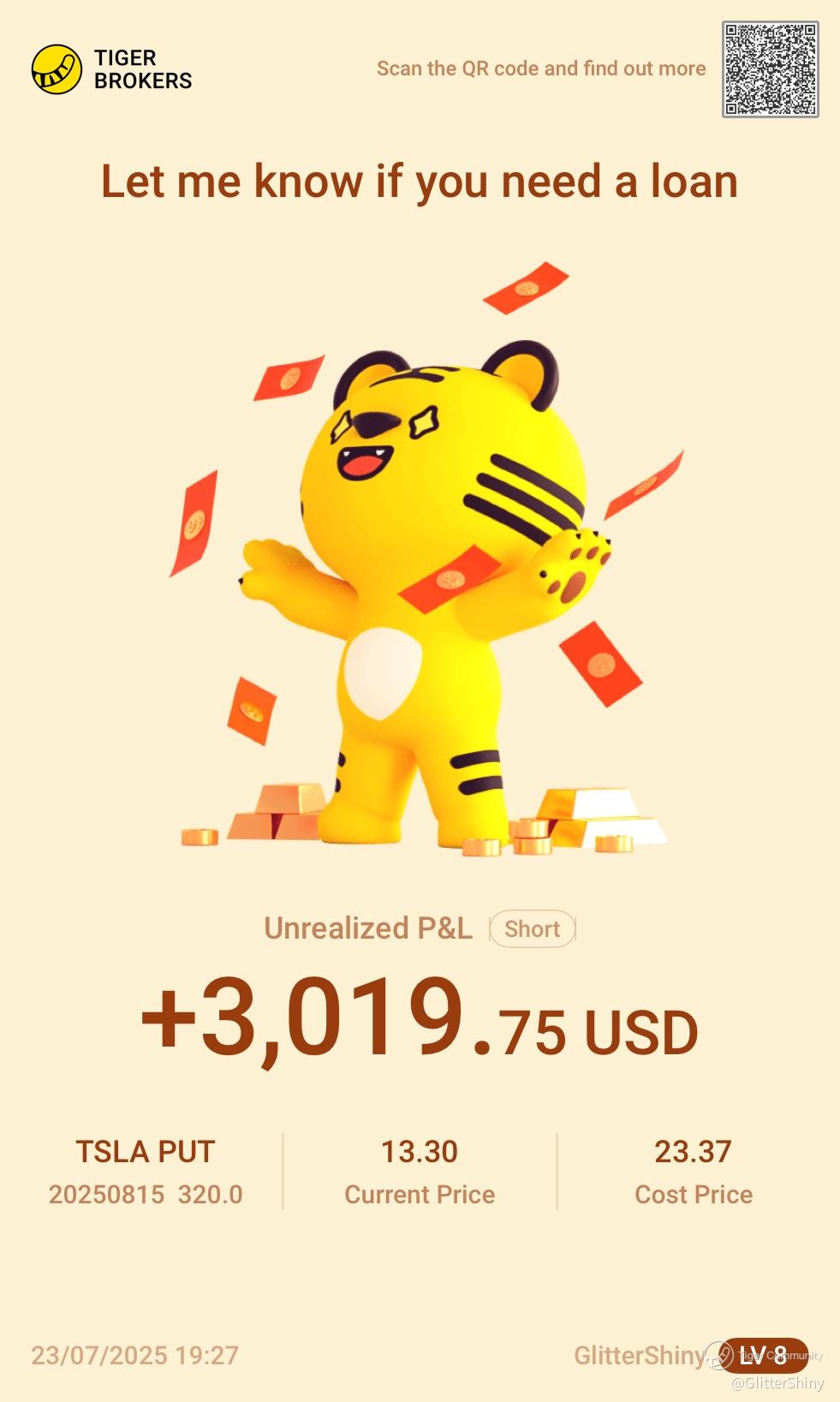 $TSLA 20250815 320.0 PUT$ 400 Top or 295support after earnings. I'll take my chances..Tsla chiong ah!!