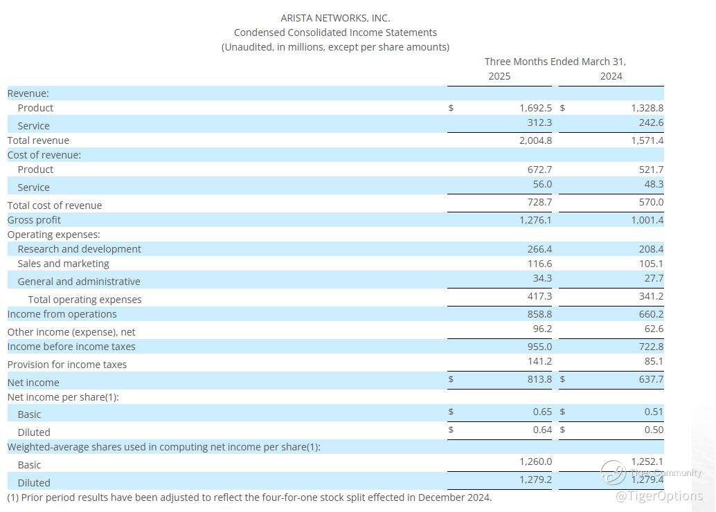 When Arista reported Q1 FY 2025 (ended April 30) on May 6, the headline numbers reinforced my confidence: