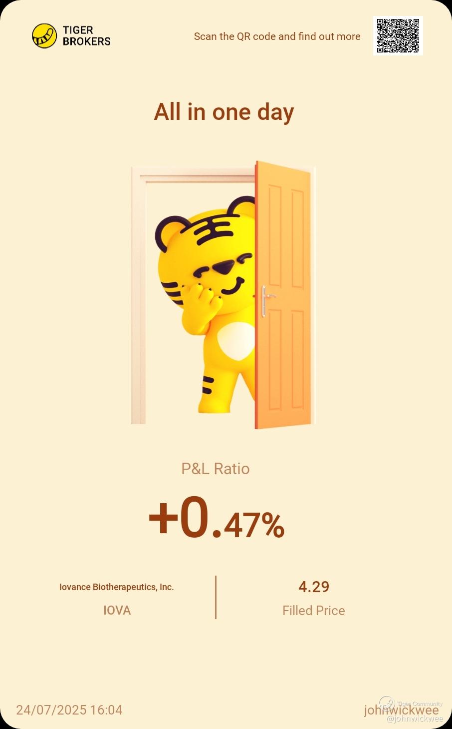 $Iovance Biotherapeutics, Inc.(IOVA)$ Lucky to make an exit with no losses. No point holding on to a non-performing stock as I can use the funds more productively elsewhere.