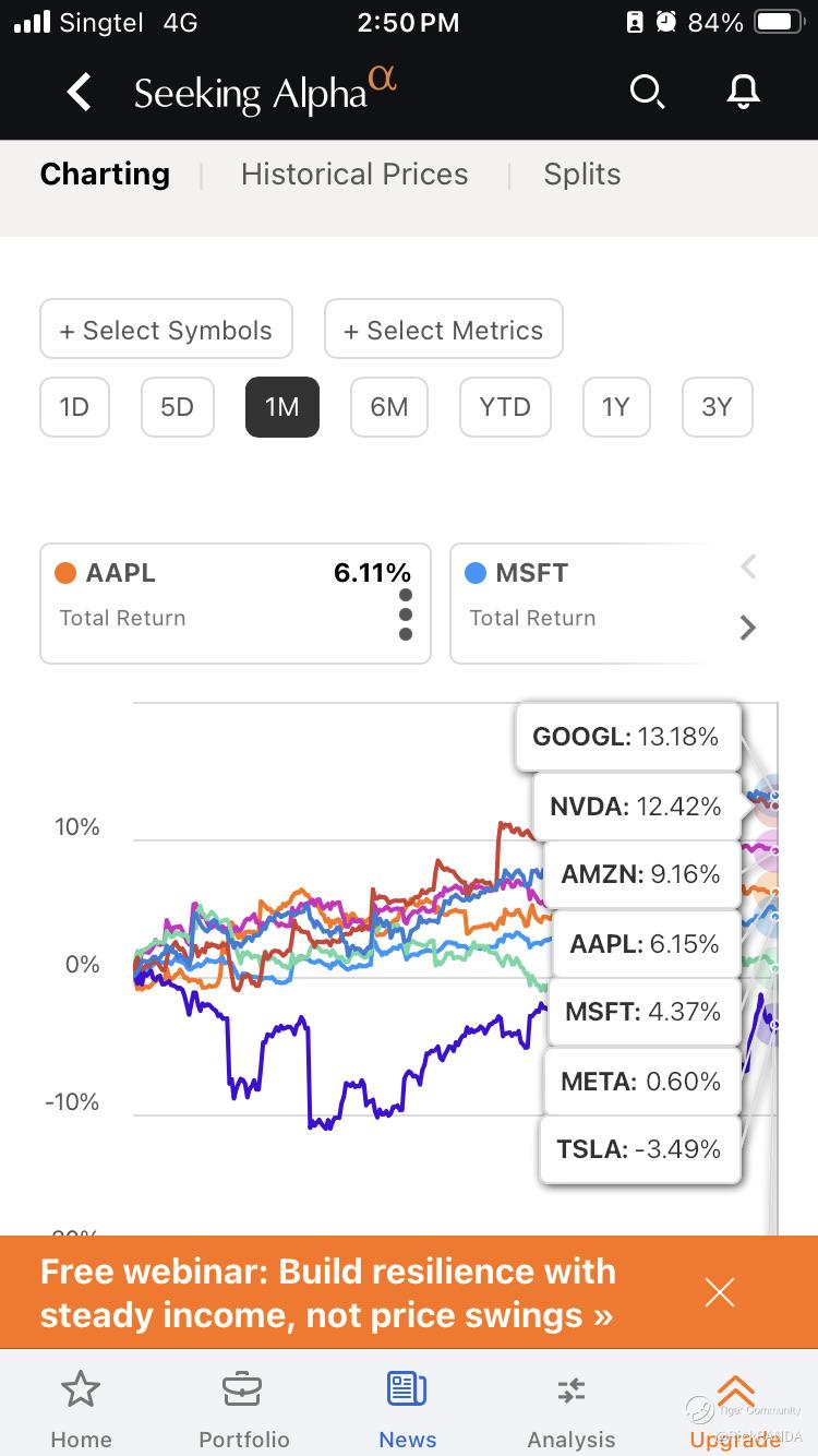 Like I say. One way is. Let's say you have 1000USD to allocate to Mag 7. Because Tiger Brokers can fractional shares. Why not buy 1000/7 of each Mag 7 with fractional shares.