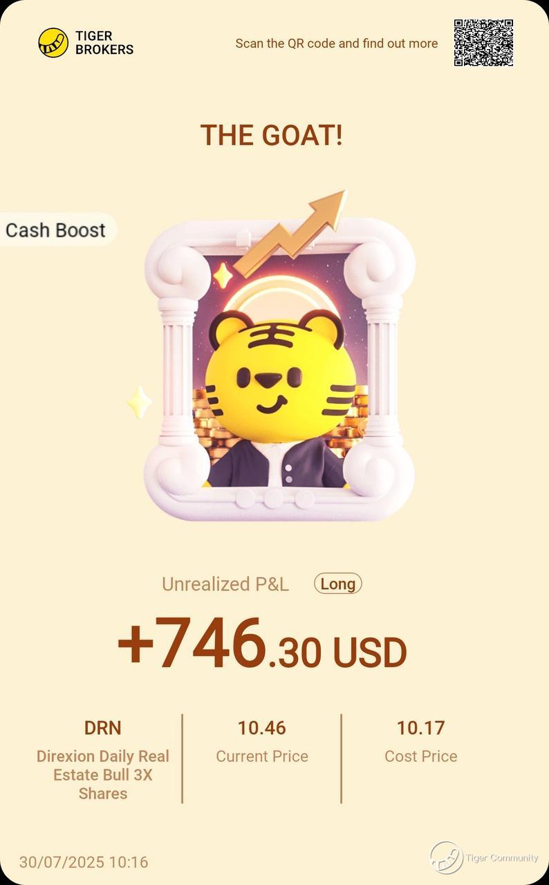 $Direxion Daily Real Estate Bull 3X Shares(DRN)$ nailed the REIT rebound! 3x leverage amplified gains, but trimmed 50% as rate-sensitive. Keeping some for Fed policy clarity.