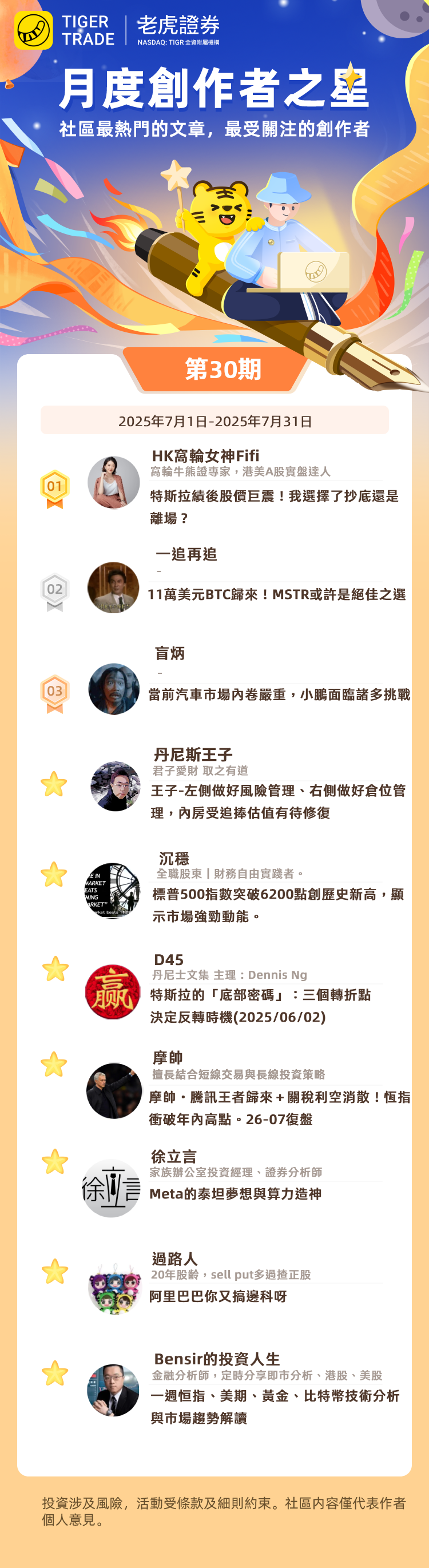 喺老虎證券香港社區,我哋每月評選一次老虎月度創作者之星![Love you]