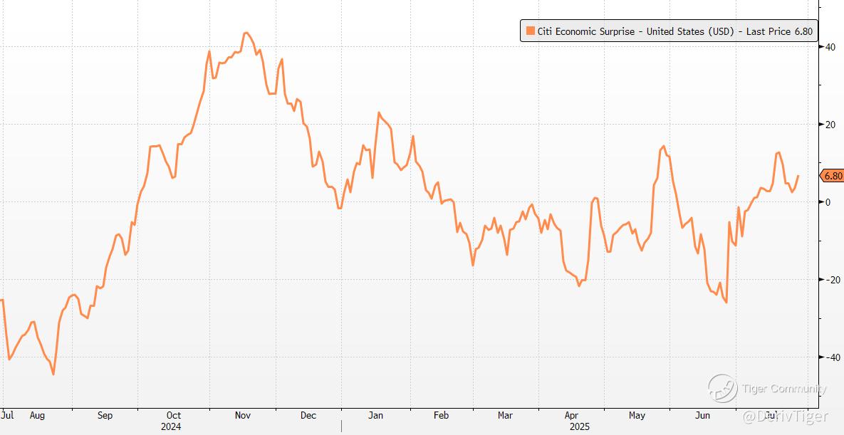 Interestingly, the U.S. stock market now seems almost immune to tariffs, with the belief that Trump will certainly push through TACO. We believe the August 1st deferral deadline may not be extended again, but this won’t stop the Trump administration from collecting tariffs while negotiating. We have previously analyzed that an average tariff of around 15% could cover the net costs of the "Great and Beautiful" bill. Additionally, U.S. economic data remains relatively strong, and since July, Citigroup's Economic Surprise Index has been trending upward, still remaining above the zero line, leaving room for positive surprises. Therefore, Trump still has leverage. In summary, we believe the market is currently underestimating the impact of tariffs. If subsequent negotiations encounter obstacles or if the tariff impact exceeds expectations, the market is likely to experience a correction.