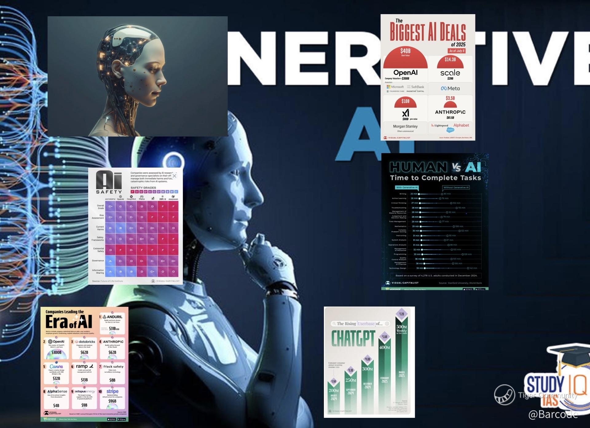 Letβs cut to the data. One of the visuals compares time-to-complete tasks with and without generative AI; the difference is astonishing. Writing drops from 80 minutes to 25. Programming collapses from 129 to 33. Even complex problem-solving, time management, and judgment-based roles see massive compression. AI isnβt just a tool, itβs a time-bending force multiplier.