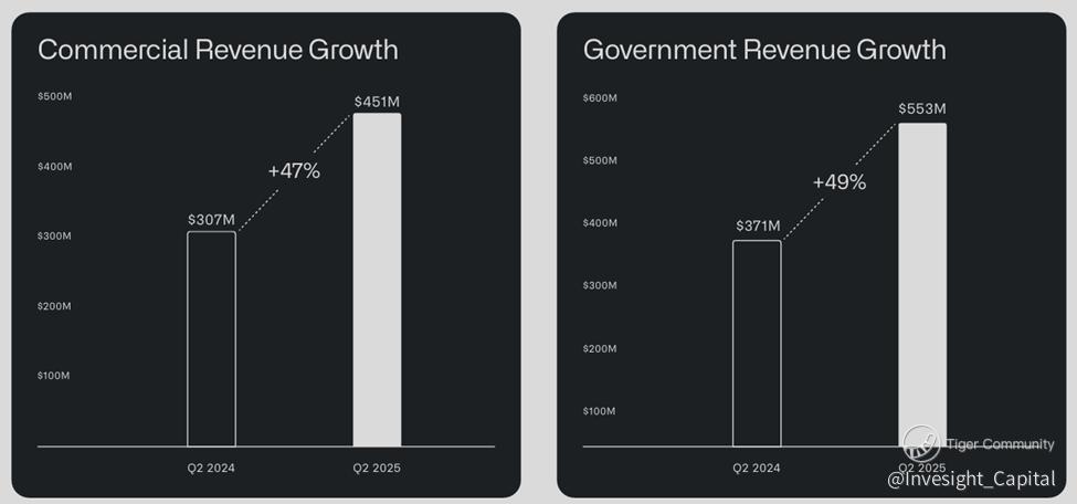 Commercial revenue rose 47% YoY, while government revenue increased 49%.