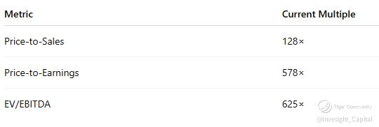 Even under super-bullish assumptions—say 50% annual revenue growth for 5 years, 40% net margin (well above industry average), and a generous 50× P/E multiple—the fair value would still only be around $115/share. That suggests the current price is heavily front-loaded with future expectations.