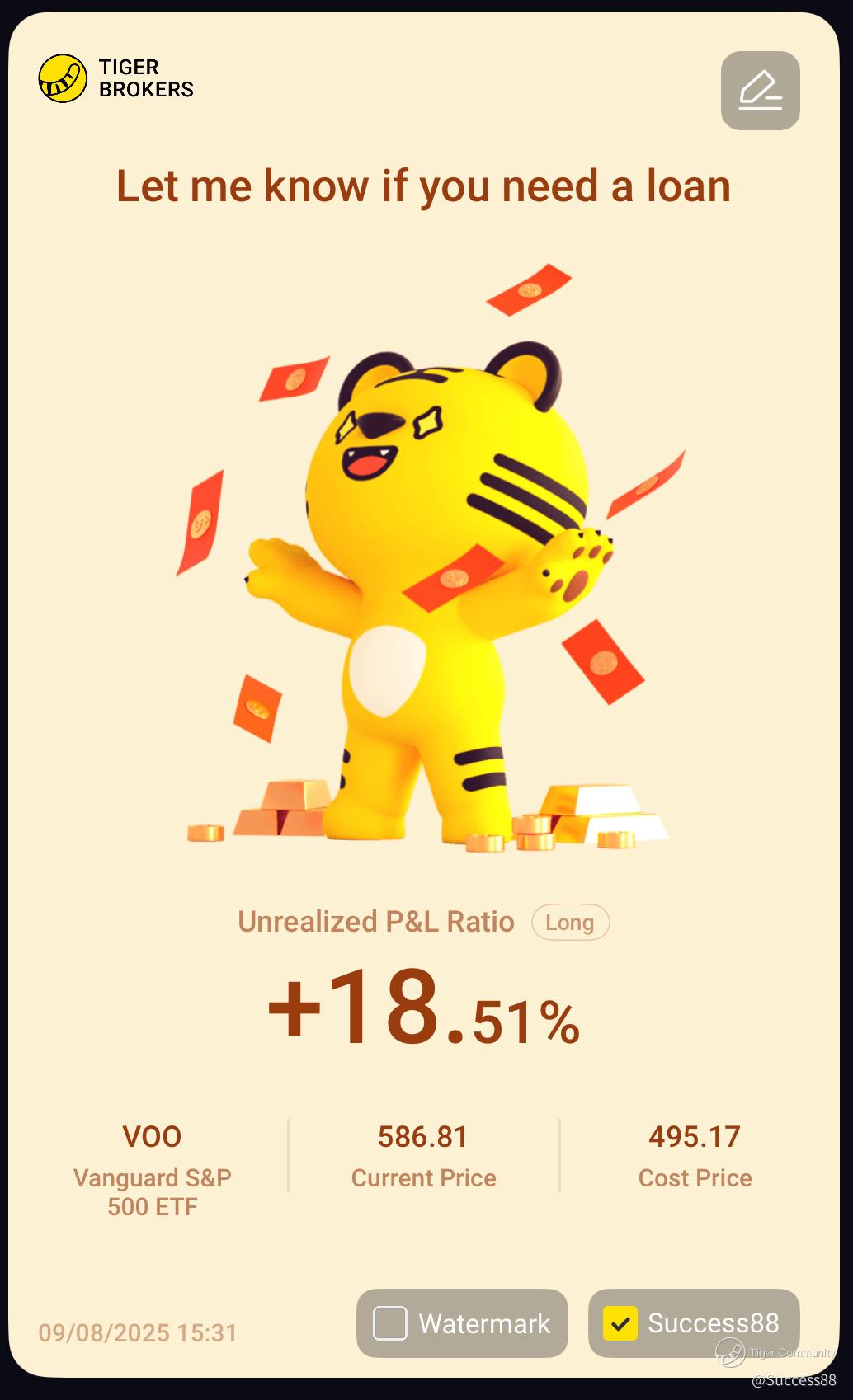 $Tiger Brokers(TIGR)$ my quick trade I proud of is to trade$Vanguard S&P 500 ETF(VOO)$ whenever there is a dip i will buy in. As always invest in S&P 500 ETF won't go wrong as I learn this skill from Warren Buffett.