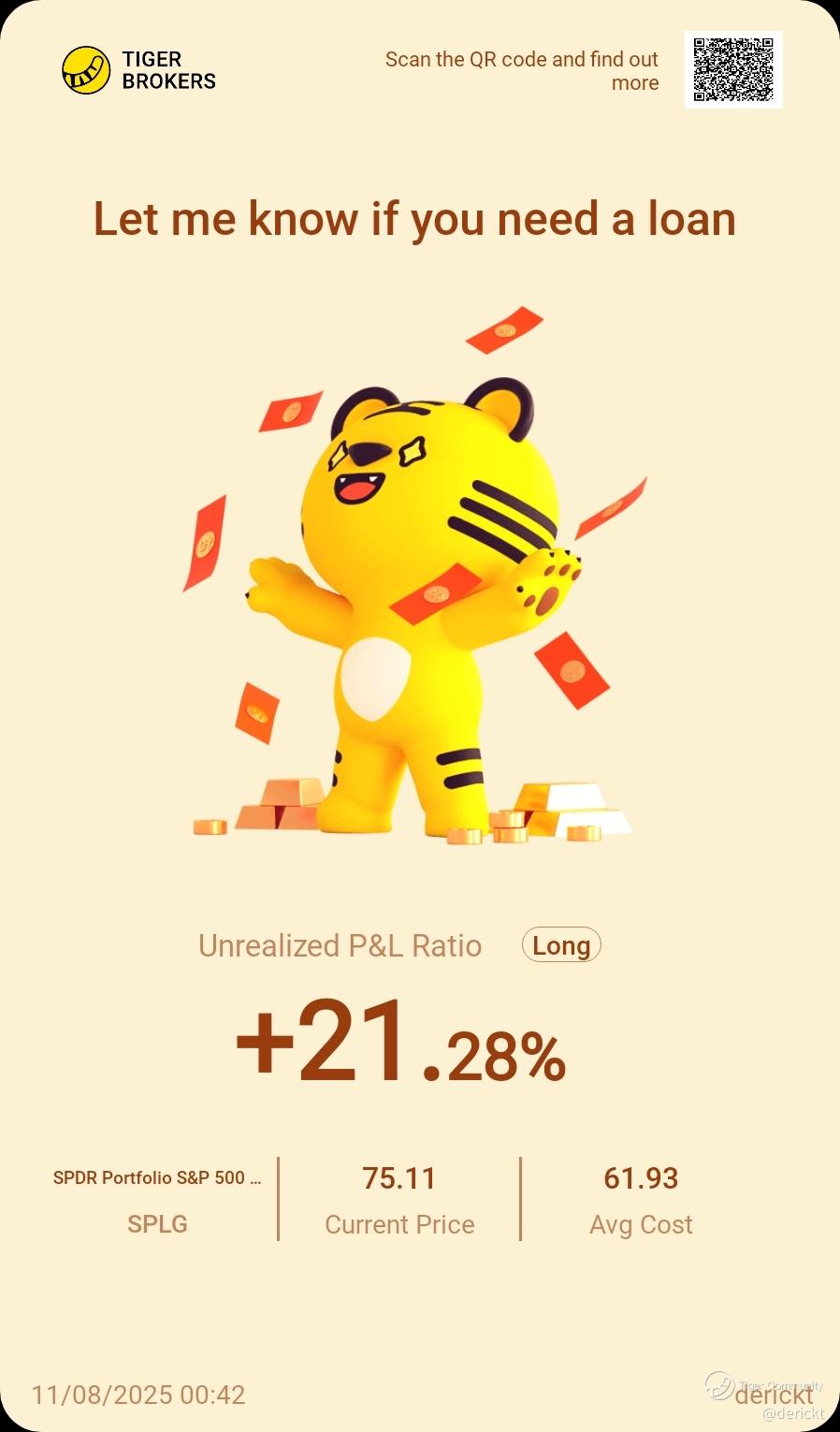 $SPDR Portfolio S&P 500 ETF(SPLG)$ love the auto invest feature in $Tiger Brokers(TIGR)$ that enables me to build a long term portfolio effortlessly & effectively
