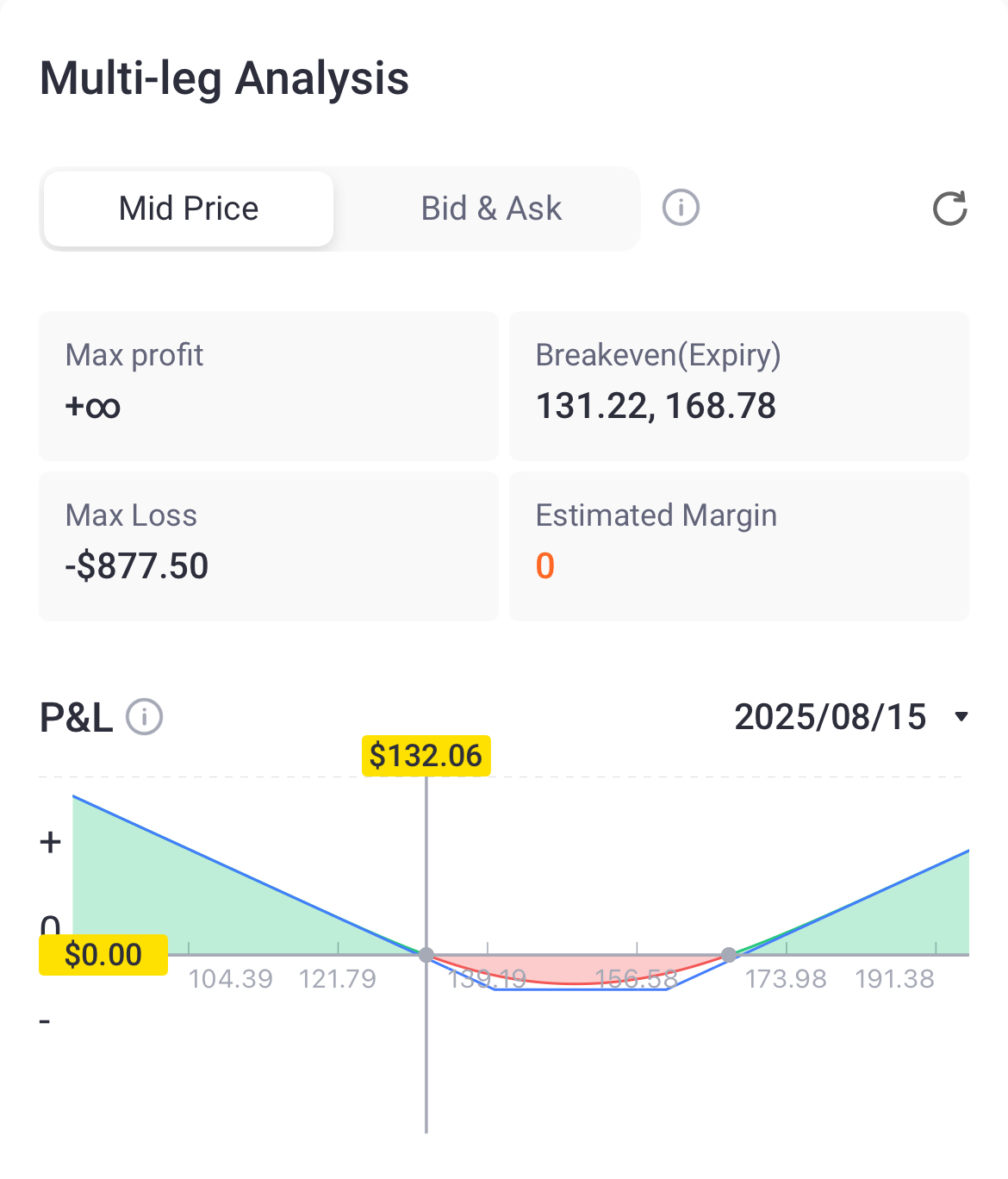 Structure: Buy ATM $150 CALL + ATM $150 PUT