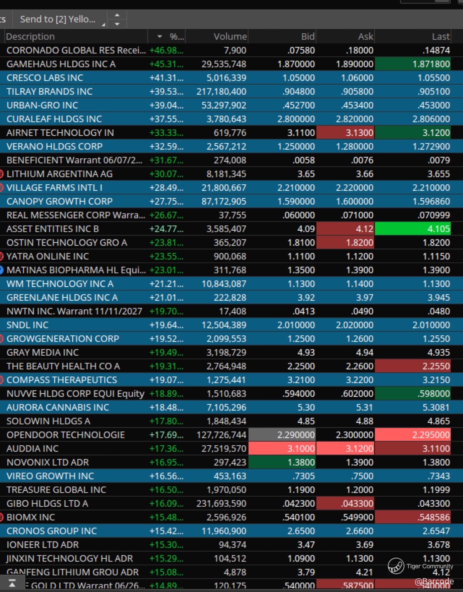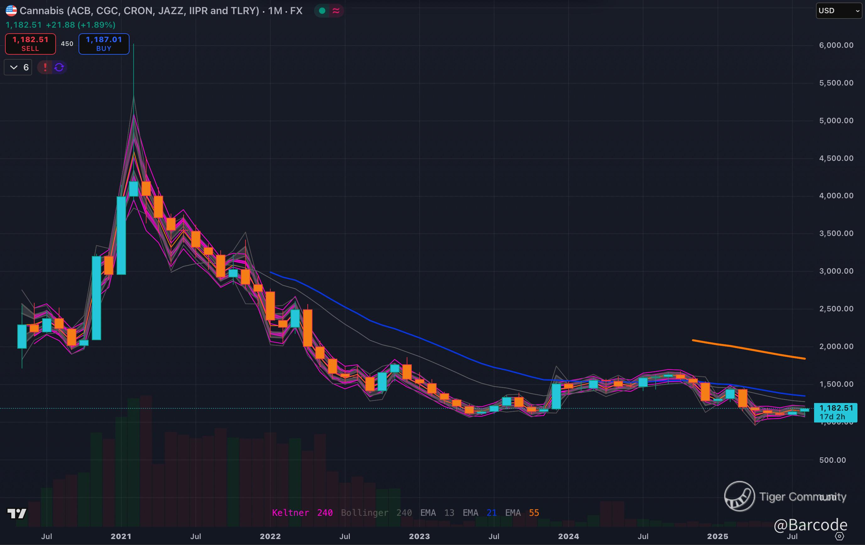 Technicals confirm what momentum implies. Keltner and Bollinger tighten their ties, RSI climbs toward that overbought zone, MACD flips green with strength of its own. $TLRY +39.53%, $CGC +27.75% lead the charge, with $CURLF, $ACB, and $CRON gaining large. $TLRYโs 217 million volume stands tall; I am reading this tape as a sector-wide call. Breadth this broad isnโt luck or chance; itโs the rhythm of a bullโs advance.