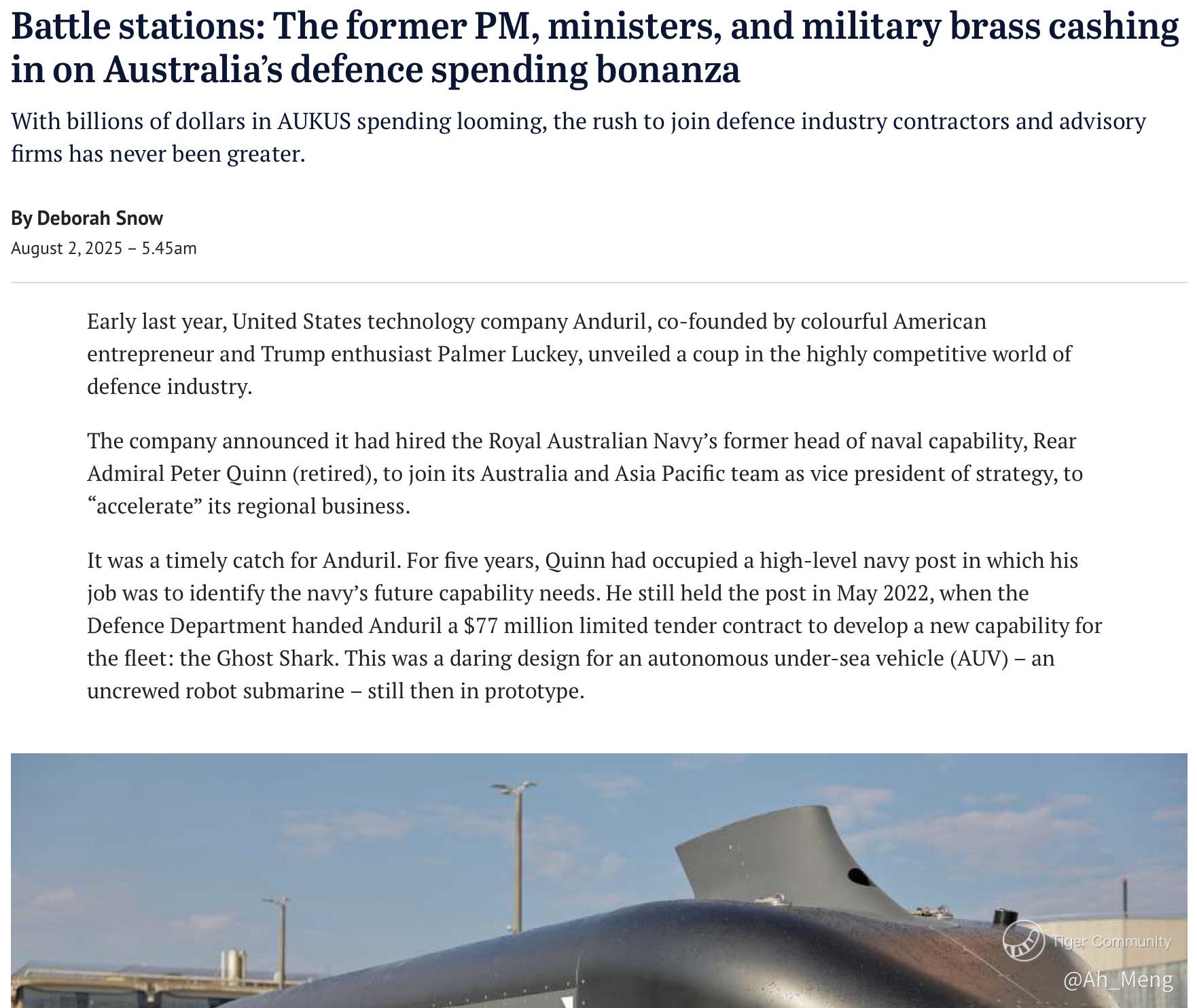Not sure how many of you heard of the acronym, AUKUS? Not Donald Trump before he was briefed a couple of months ago. It means simply Australia, UK and US, a trilateral security partnership signed in 2021 between all the predecessor governments of those countries. Obviously, those signees have moved on. The focus was for Australia to acquire nuclear-powered submarines and rotational basing US and UK nuclear-powered submarines while the build is taking place… a side dish of this pact is other military technologies collaboration.