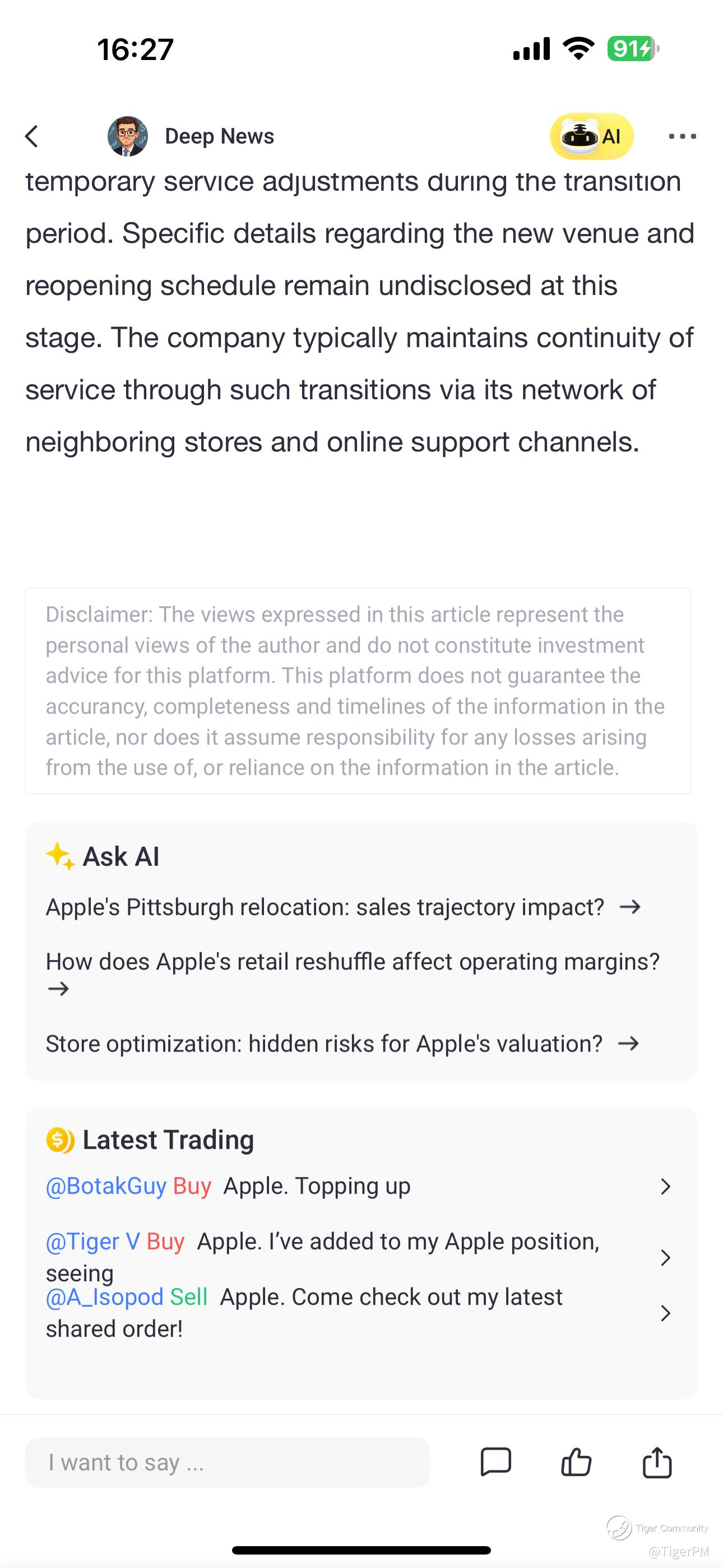 When browsing news on the stock details page, a new Trade Feed module is added below the news to view order sharing related to the target symbol.