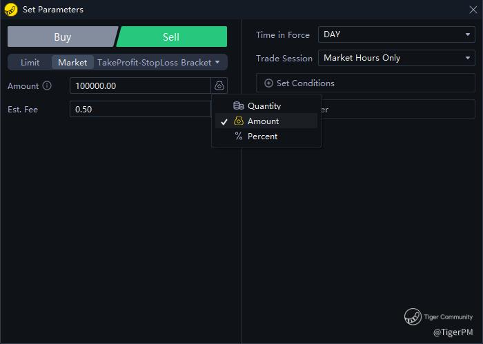 3.Preset quantity scenarios Place an order worth 100,000, with an estimated rate of 0.5% in one click