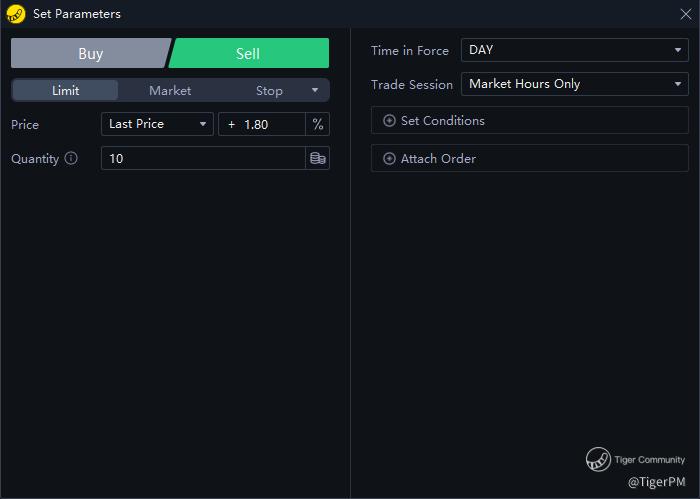 1.Preset price scenarios For symbols with price limits, quickly place a limit order at a price 1.8% higher than the last price.