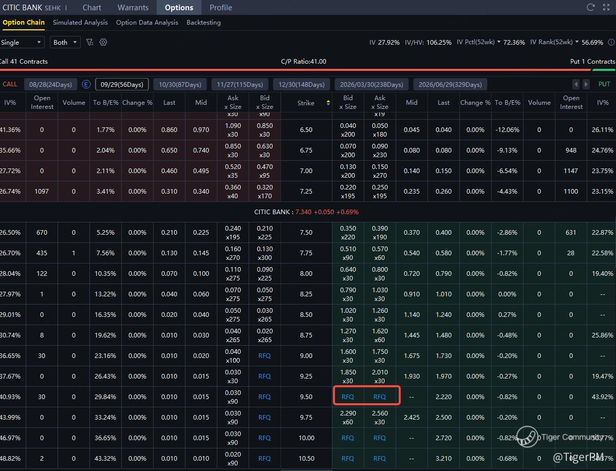 For Hong Kong stock options without real-time market quotes, RFQ function is supported. After clicking, the market maker can send an inquiry request first.