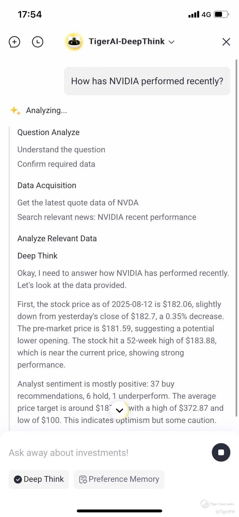 After TigerAI was launched, we received feedback from users that the thinking time was too long and that part of the thinking process mainly reflected low-value information from the data retrieval stage.