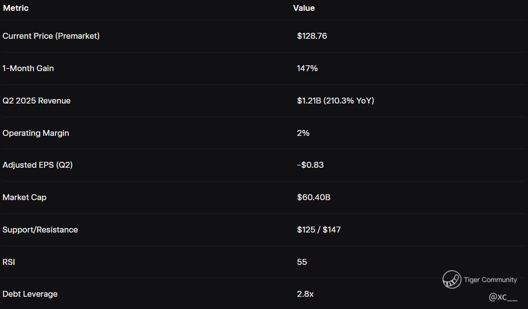 Collapse Risk: If selling accelerates, the stock could test $100, a psychological level near the 50-day moving average ($120.49), especially with a $9 billion Core Scientific acquisition looming and lockup expirations in August adding 290 million shares.