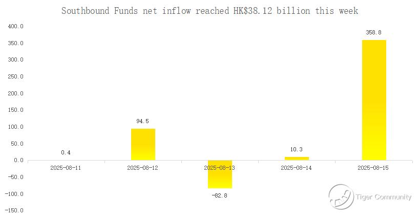 Southbound Fund continued its strong momentum, with a net inflow of HK$38.12 billion this week. Notably, on Friday alone, the net inflow reached HK$35.88 billion.
