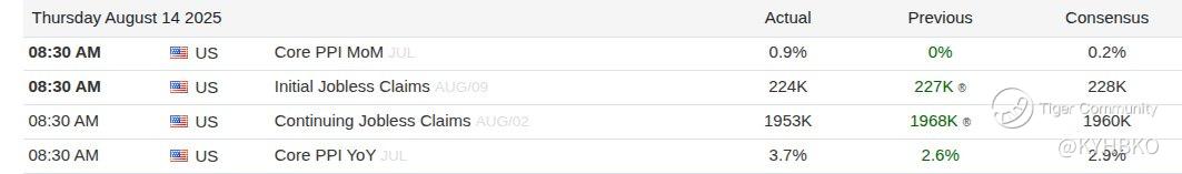 July PPI inflation rises to 3.3%, above expectations of 2.5%. Core PPI inflation rose to 3.7%, also above expectations of 2.9%. Month-over-month PPI inflation is now at its hottest since March 2022. The Fed remains in a very difficult spot here. - X user The Kobeissi Letter