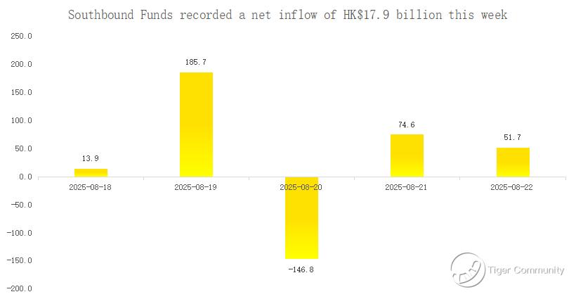 Southbound Funds continued to flow into Hong Kong stocks, with net purchases totaling HK$ 17.9 billion this week.