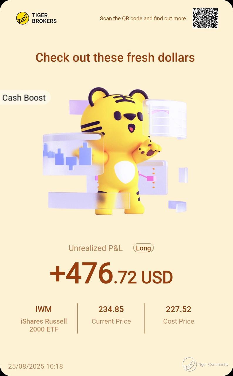 $iShares Russell 2000 ETF(IWM)$ This IWM move felt spot on, small caps really delivered! With the economy holding strong and money flowing back, the Russell 2000 showed real flexibility. But the swings are wild — better to lock in gains for peace of mind.