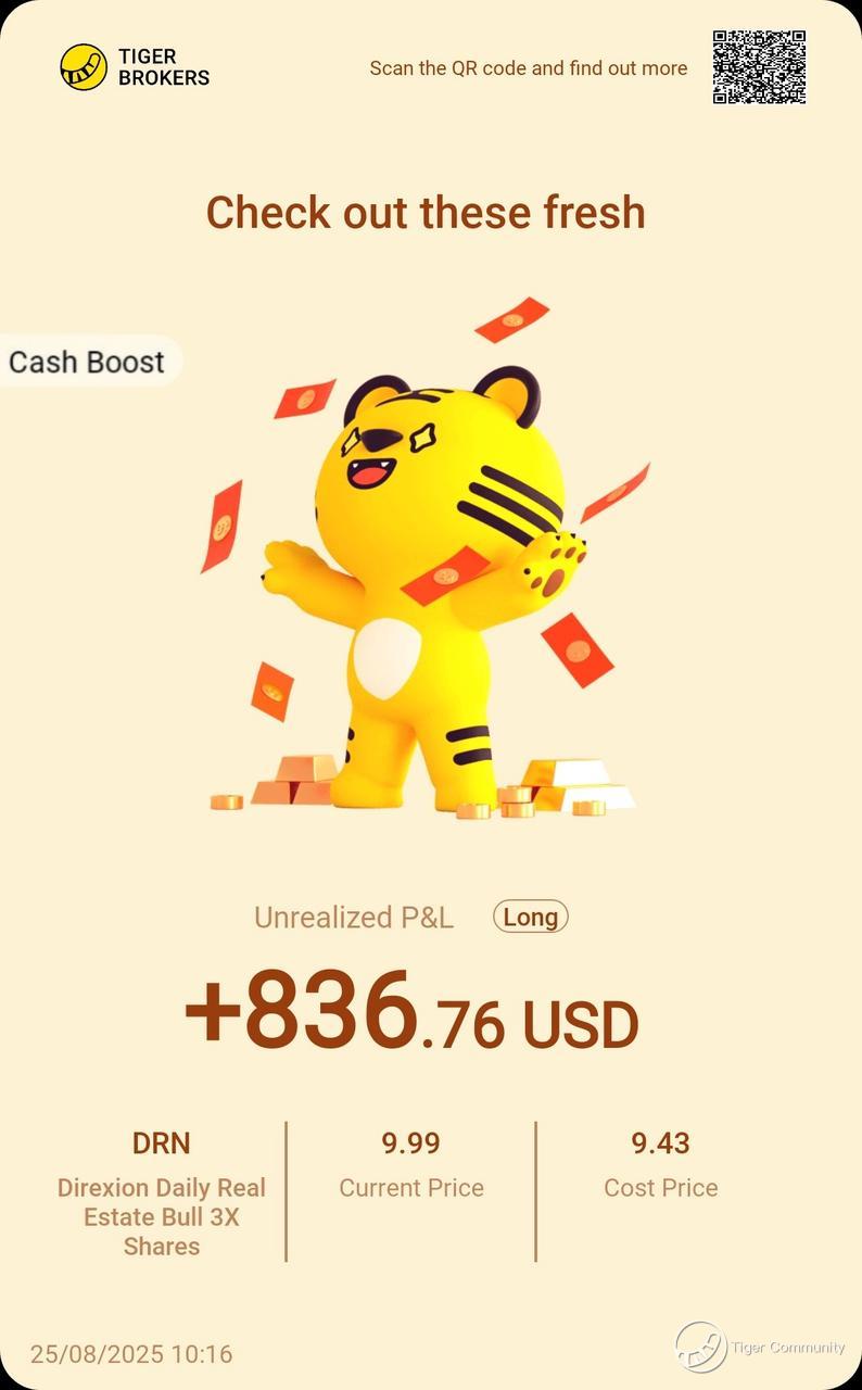 $Direxion Daily Real Estate Bull 3X Shares(DRN)$ ’s recent move got me pumped—the real estate sector’s heating up and the 3× leverage is amplifying short-term upside. Volatility’s real, but I’m watching closely, riding the momentum!