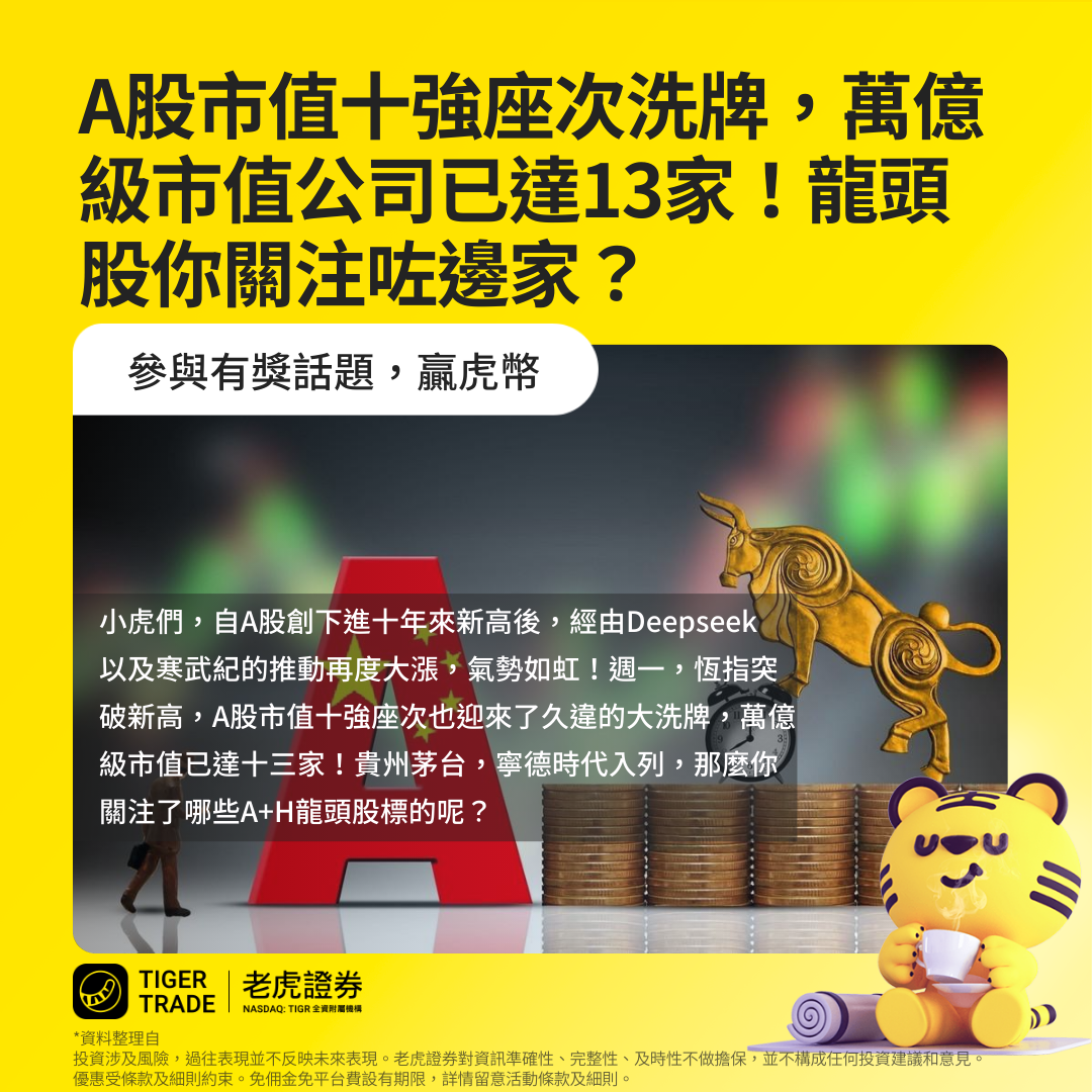 那麼小虎們,你關註到A股新高後的哪些龍頭股大洗牌呢?你最看好哪家A+H龍頭股呢?