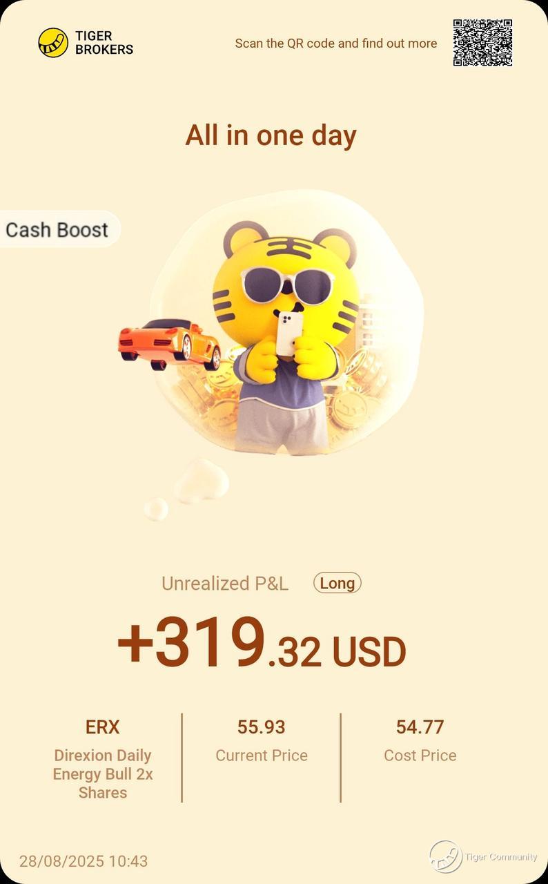 $Direxion Daily Energy Bull 2x Shares(ERX)$ Caught a nice rebound with ERX, pocketed a small gain. Oil’s swings are getting bigger, so I’m keeping it steady, managing risk and building up profits step by step.