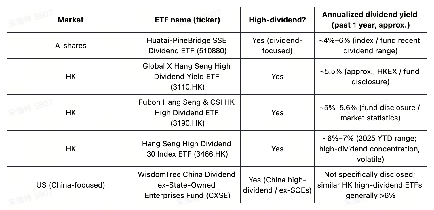 Think of Chinese-asset allocation like a combo meal. An A-share dividend ETF can be the staple — steady and reliable income — while a Hong Kong dividend ETF is like a side dish that adds extra yield and helps diversify market and currency exposure. Together they make the portfolio less one-dimensional.