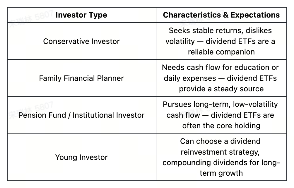 Many investors love dividend ETFs because they provide relatively stable cash flow. When markets swing, dividends act like a little consolation cushion that can help soften the blow. Compared with holding a single stock, dividend ETFs own a basket of companies, so they naturally spread risk. They trade on secondary markets just like ordinary ETFs, so liquidity is typically decent and they’re easy to buy and sell.