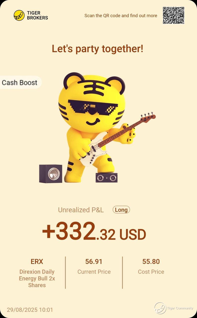 $Direxion Daily Energy Bull 2x Shares(ERX)$ 's 2x energy bet is paying off! Geopolitical heat + inventory drop = perfect timing. But oil moves fast - cashing out gains and waiting for next swing!