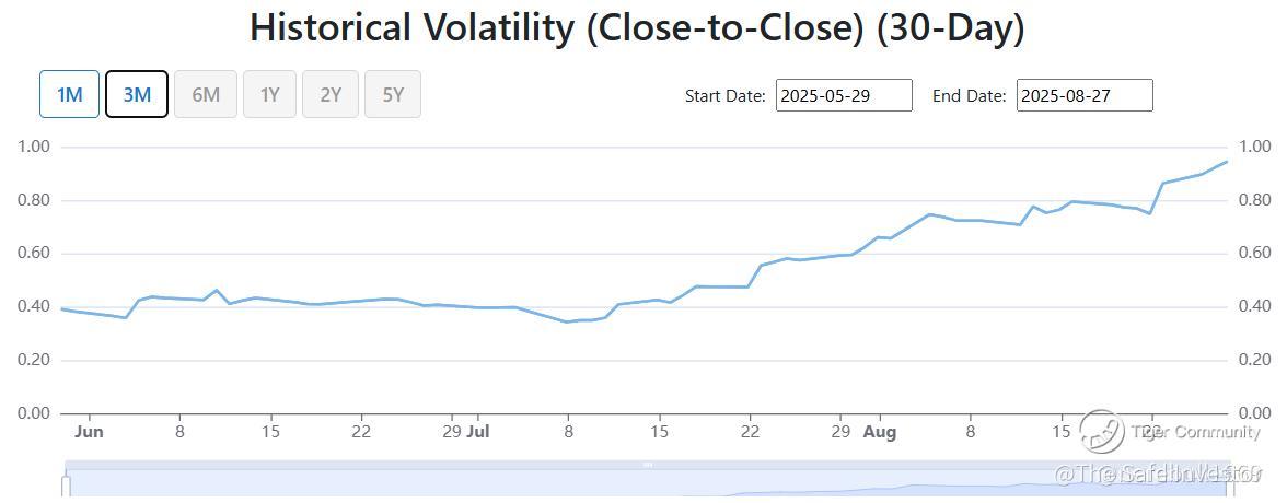 NIO’s 30-day historical volatility spiked to 0.9470 (Aug 27), up from ~0.40 in June → earnings could trigger big moves.