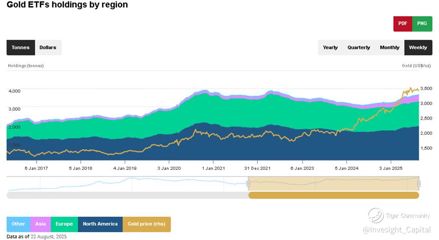 ETF flows confirm the bullish mood: gold ETF holdings just posted their biggest weekly increase since April. With the $3,500 barrier taken out, more capital is expected to flow into gold ETFs, futures, and spot markets. Over the past three years, both gold and silver prices have doubled, fueled by geopolitical tensions, economic uncertainty, and ongoing trade risks.For example, the world’s largest gold ETF, SPDR Gold Trust $SPDR Gold Shares(GLD)$ , is now approaching its own record high.