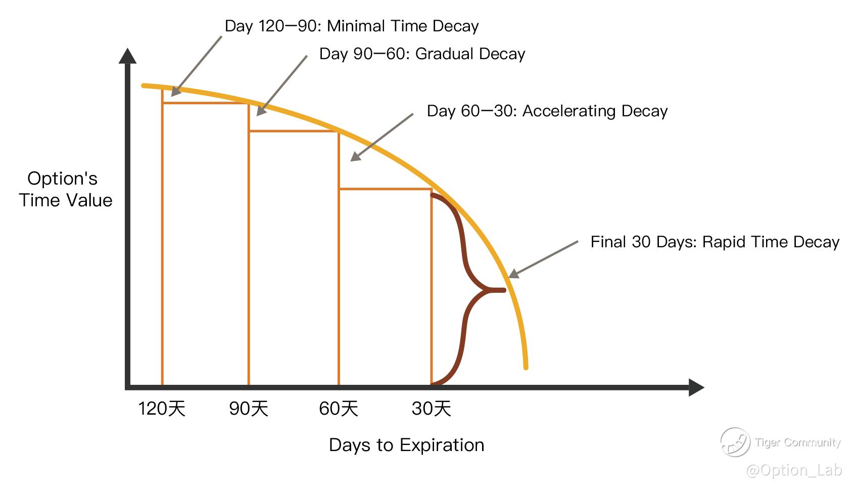 As shown in the following figure, the characteristic of accelerated loss of time value brings unique trading opportunities.