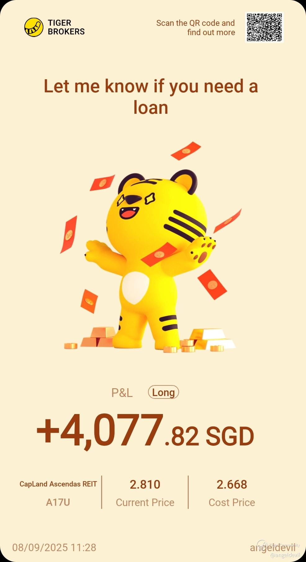 $CapLand Ascendas REIT(A17U.SI)$ good return after patiently wait